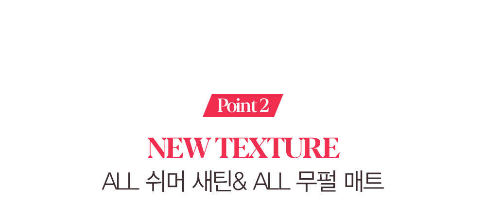 칼슘티타늄보로실리케이트,다이메티콘,티타늄디옥사이드 (CI 77891),탤크,다이페닐실록시페닐트라이메티콘,폴리글리세릴-2트라이아이소스테아레이트,프로필렌글라이콜다이벤조에이트,옥틸도데실스테아로일스테아레이트,폴리에틸렌,징크스테아레이트,나일론-12,다이아이소스테아릴말레이트,실리카,다이메티콘/비닐다이메티콘크로스폴리머,트라이메틸실록시실리케이트,틴옥사이드,적색201호,에틸헥실글리세린,적색산화철,카프릴릴글라이콜,적색226호