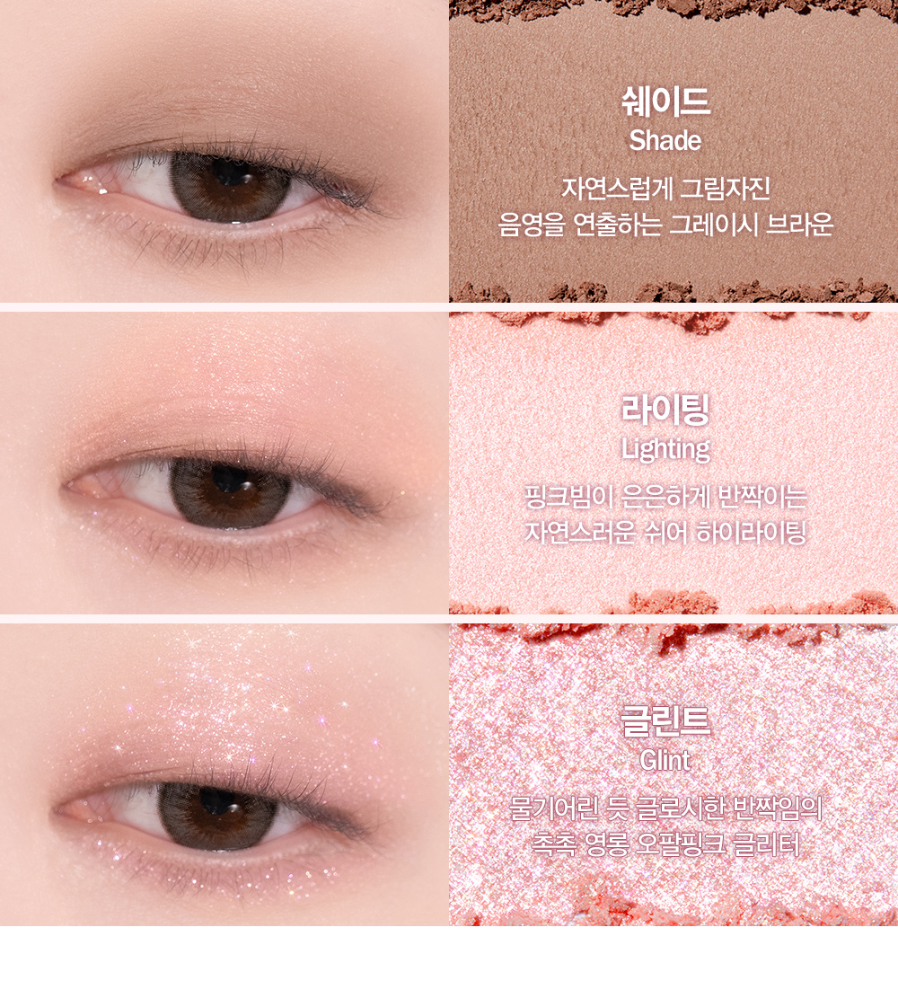 칼슘티타늄보로실리케이트,다이메티콘,마이카,티타늄디옥사이드 (CI 77891),다이페닐실록시페닐트라이메티콘,폴리글리세릴-2트라이아이소스테아레이트,칼슘알루미늄보로실리케이트,프로필렌글라이콜다이벤조에이트,탤크,옥틸도데실스테아로일스테아레이트,적색산화철,징크스테아레이트,폴리에틸렌,다이아이소스테아릴말레이트,나일론-12,다이메티콘/비닐다이메티콘크로스폴리머,실버,트라이메틸실록시실리케이트,에틸헥실글리세린,카프릴릴글라이콜,틴옥사이드,적색202호,황색산화철